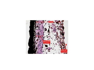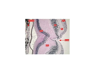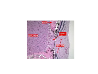 The document provides an eye and ear study guide that summarizes key structures and features. For the eye, it describes the three tunics (layers) that make up the eye wall, as well as internal structures like the aqueous and vitreous compartments, lens, zonular fibers, and retina. It also summarizes key features of the eyelid. For the ear, it outlines the external structures of the auricle and external auditory meatus, as well as the middle ear ossicles and auditory tube, and mentions the two main components of the inner ear.