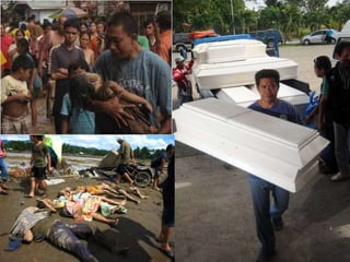 The document discusses how victims of Tropical Storm Sendong in areas like Cagayan de Oro and Iligan City may face an outbreak of dengue fever in addition to leptospirosis in the coming weeks. Health officials expect rising dengue cases in evacuation centers around two weeks from now. It also prompts thinking about how people in medieval times may have interpreted such a catastrophe, likely associating it with divine punishment or plague.