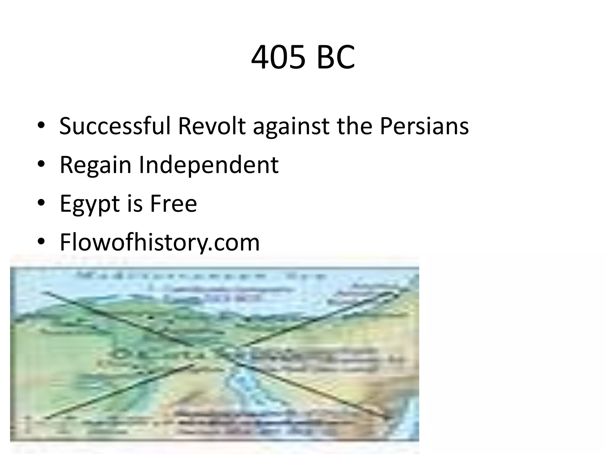 The document describes events from 405 BC. There was a successful revolt against the Persians, allowing Egypt to regain its independence and freedom after being ruled by Persia. Egypt was able to overthrow Persian control through revolt.