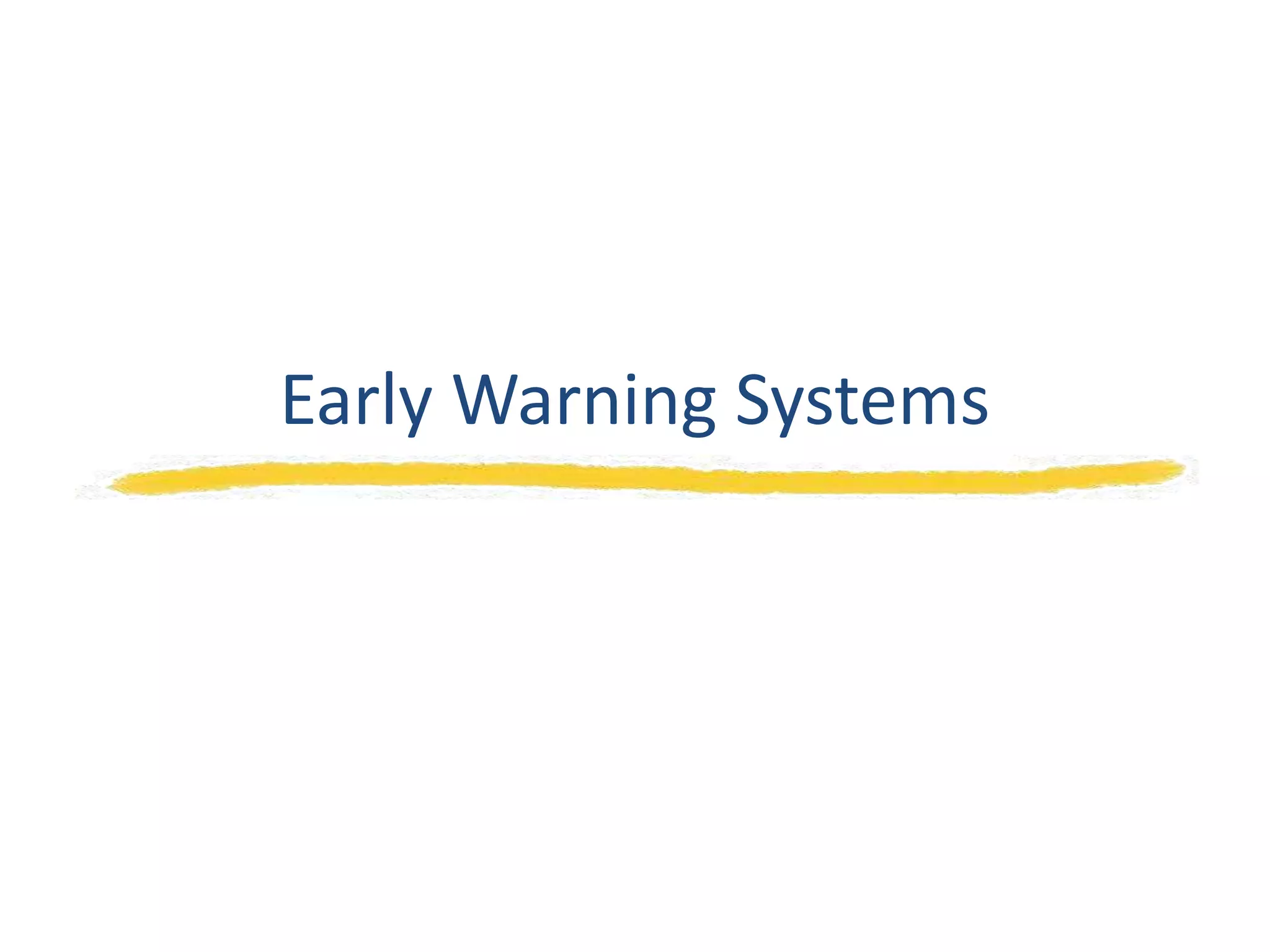 The document discusses early warning systems for natural hazards. It defines key terms related to hazards and early warning systems. It discusses international frameworks for disaster risk reduction, including the Hyogo Framework, and outlines key aspects of effective early warning systems such as monitoring hazards, disseminating warnings to users, and ensuring response capabilities. Specific examples of early warning systems are provided for earthquakes, tsunamis, floods, wildfires, and famine.