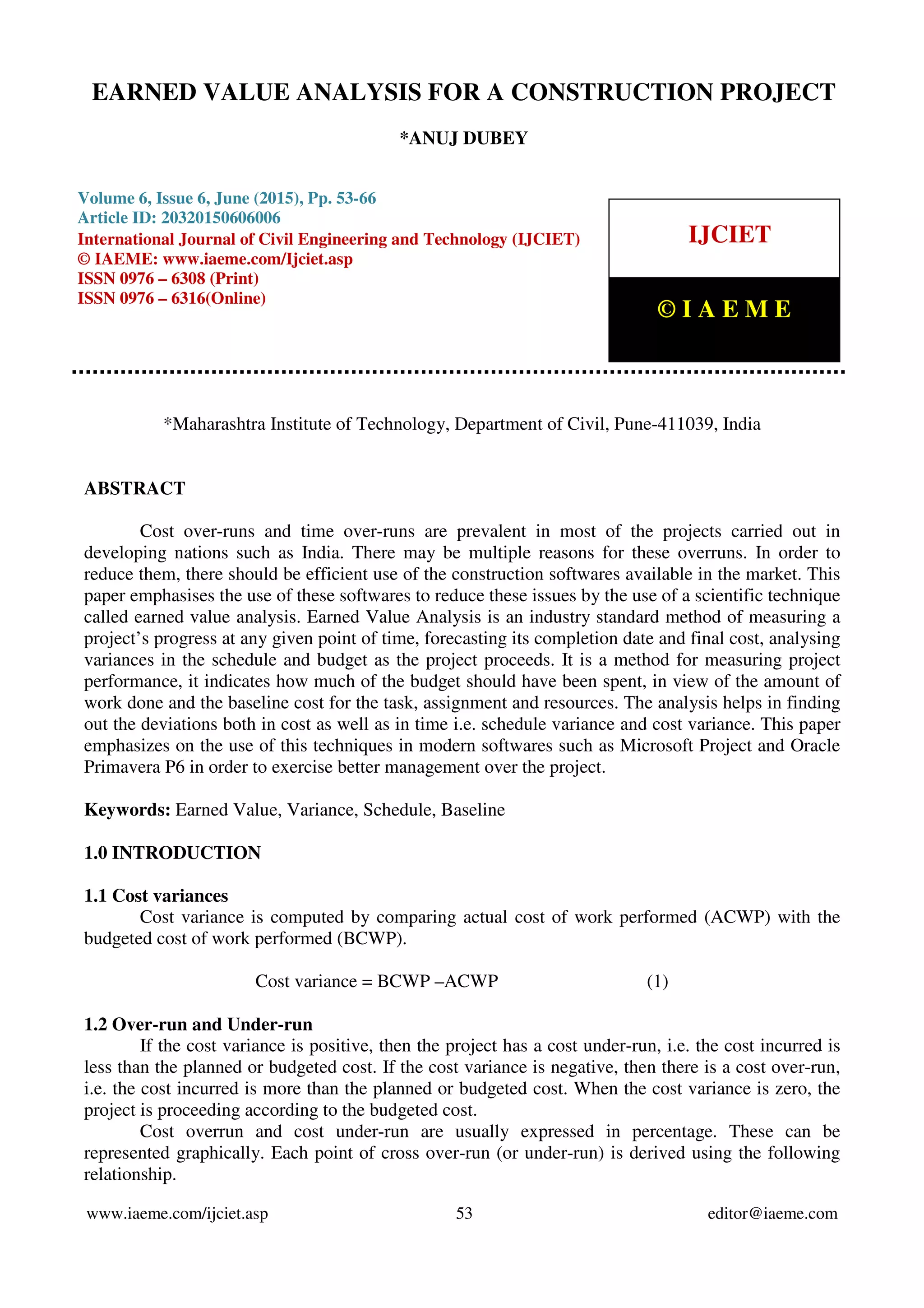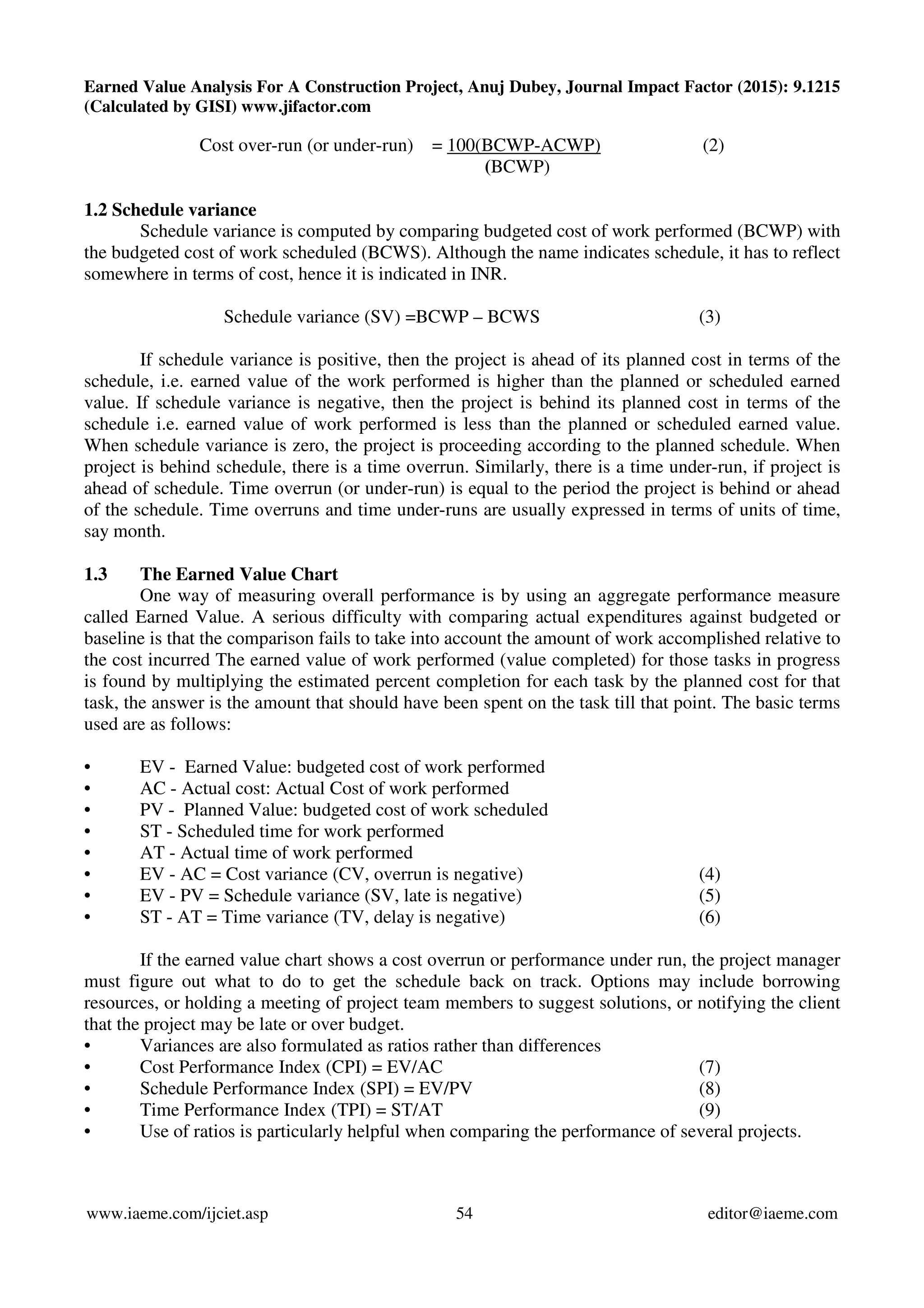 2) The document describes a case study of applying earned value analysis to a bridge construction project in India. It involved constructing two flyovers over five phases with a budget of 25 crores.