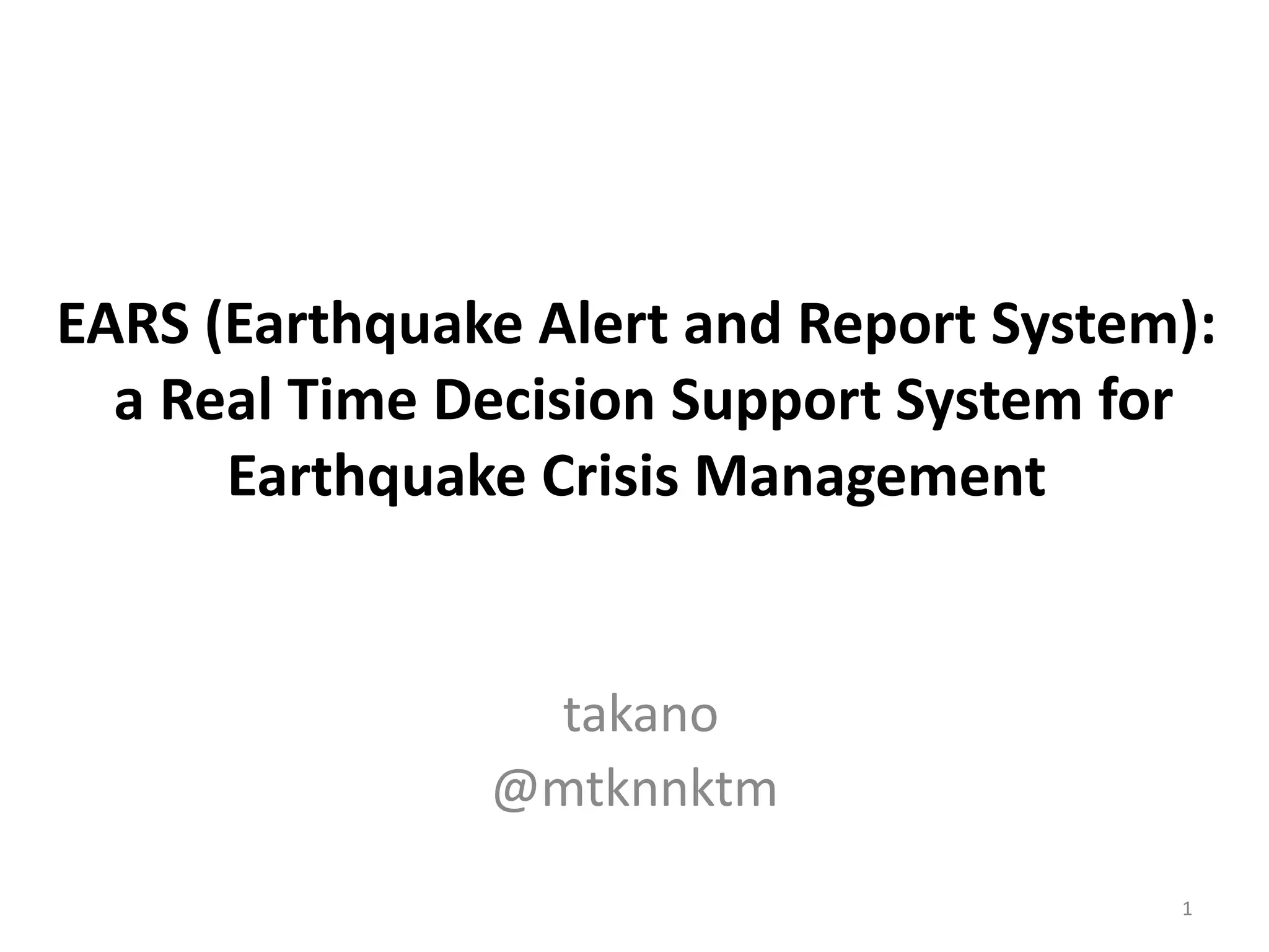 KDD2015の論文(EARS (Earthquake Alert and Report System): a Real Time Decision Support System for Earthquake Crisis Management)の紹介スライドです。