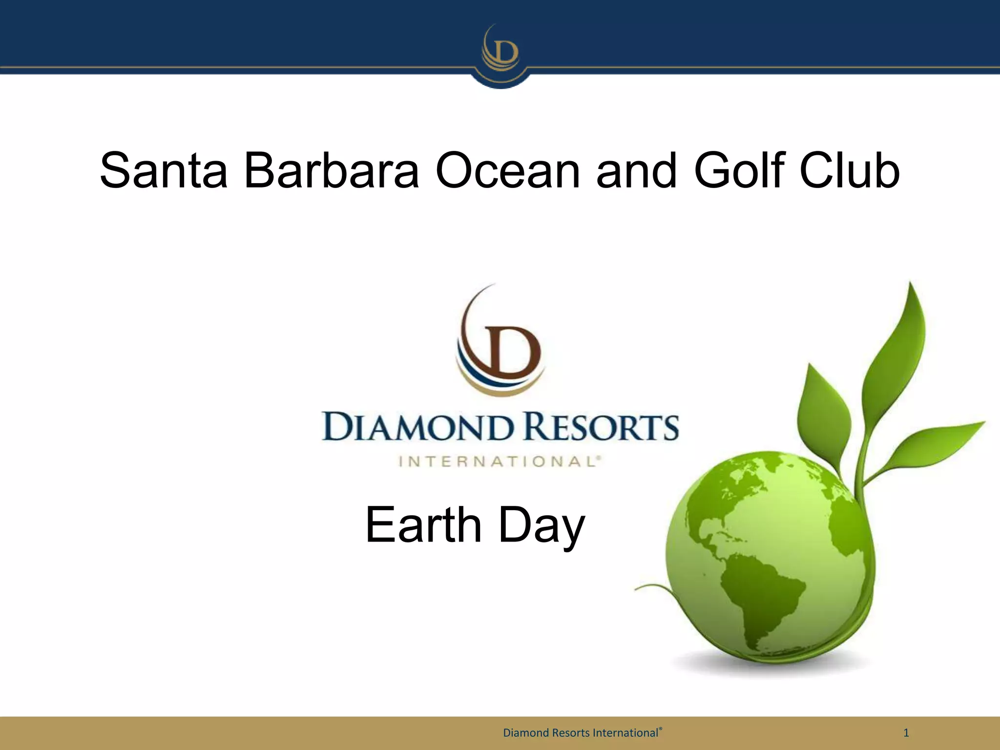 The document discusses the Earth Day celebration at the Santa Barbara Ocean and Golf Club, organized by Diamond Resorts International. It highlights various activities and initiatives aimed at promoting environmental awareness. The event showcases the club's commitment to sustainability and community engagement.