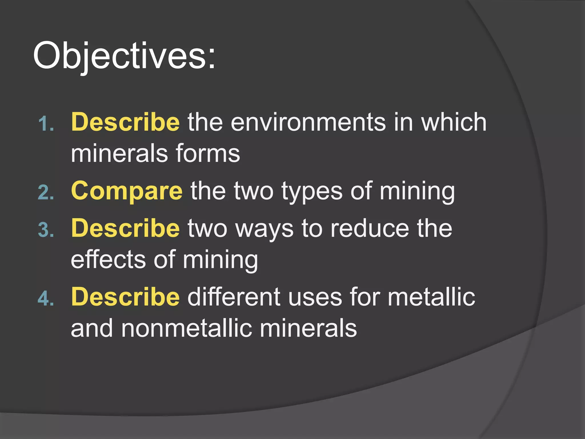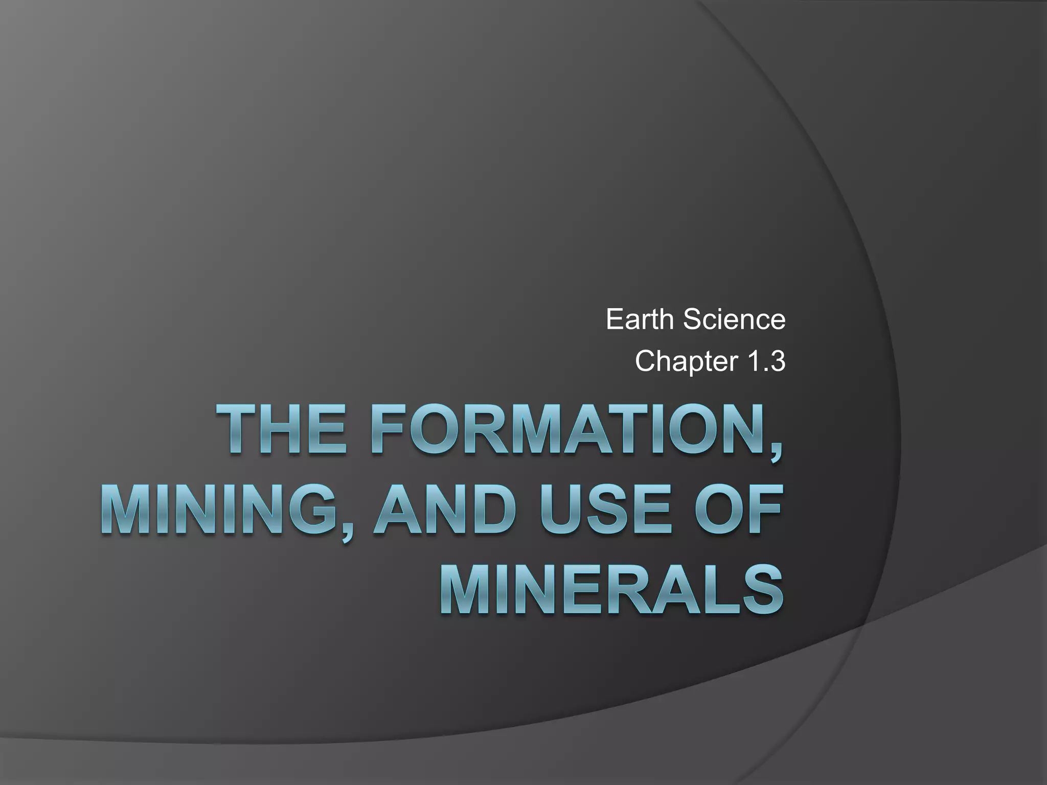 Minerals form in a variety of environments in the Earth's crust including evaporating salt water, metamorphic rocks, limestones, hot-water solutions, pegmatites, and plutons. Minerals are extracted through surface mining methods like open pits and quarries or subsurface mining methods when deposits are too deep. Responsible mining aims to reduce environmental impacts through reclamation and recycling to lessen our need for minerals. Metallic minerals have many uses in technology due to conducting properties while nonmetallics are useful as insulators in applications like glass and computer chips. Gemstones are valued for their beauty over function.