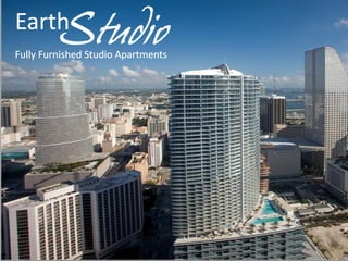The document presents Earth Studios in Greater Noida, emphasizing its strategic location near key attractions such as IT companies, universities, and entertainment venues, making it ideal for tourists and professionals. It offers 375 fully furnished studio apartments designed for corporate executives and small families, promoting a healthy lifestyle with amenities like a travel desk and conference room. The project's connectivity through expressways and metro links enhances its appeal as a hub for knowledge and professional tourism.