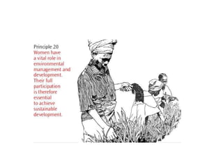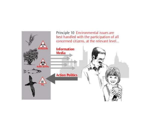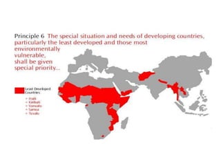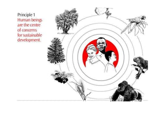 The document summarizes key details from several United Nations Earth Summits focused on sustainable development and the environment, held between 1992 and 2012. The main summits discussed were the 1992 Rio Summit, where agreements were reached on Agenda 21 and the Rio Declaration; the 2002 Earth Summit in Johannesburg; and Rio+20 in 2012. Key outcomes included frameworks and conventions on climate change, biodiversity, desertification, and commitments to achieve Millennium Development Goals.