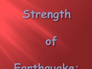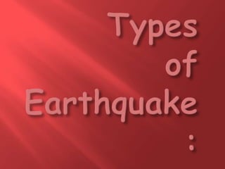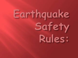 The document discusses earthquakes, including their causes, types of seismic waves produced, measurement on the Richter scale, potential hazards caused by earthquakes like landslides, fires, liquefaction, tsunamis and floods. It also discusses methods of earthquake prediction and safety precautions to take during an earthquake based on one's location.