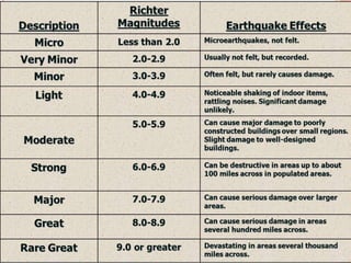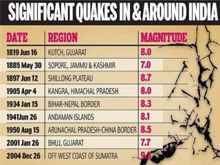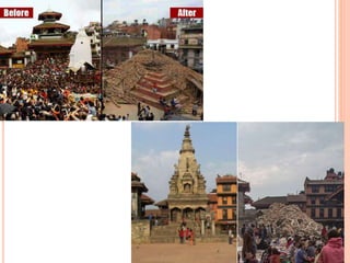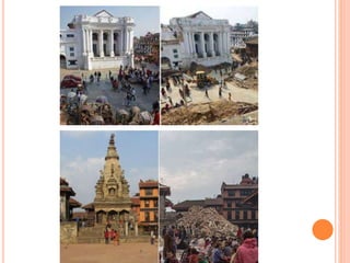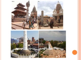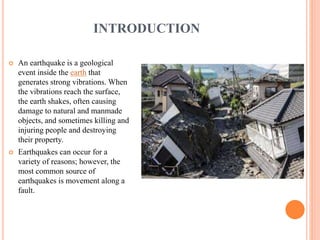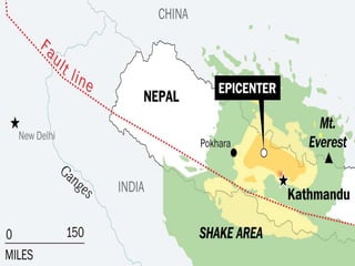 The document provides an extensive overview of earthquakes, detailing their causes, types, measurement methods, and effects, particularly highlighting the Nepal earthquake of 2015. It explains seismic waves, fault mechanisms, and the resulting impact on structures and human life, including fatalities and economic losses. Additionally, it emphasizes the importance of disaster preparedness, risk assessment, and the social ramifications following such seismic events.