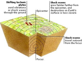 - Earthquakes generate seismic waves that travel through the earth, including P-waves, S-waves, and L-waves.
