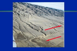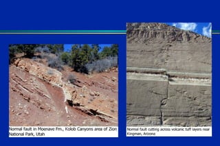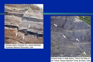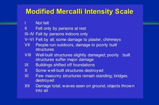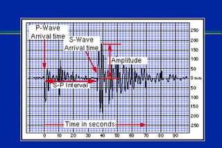 Earthquakes are caused by sudden movements within Earth's crust that cause rocks to bend, break or fracture. Most earthquakes occur along the Ring of Fire, a belt circling the Pacific Ocean where 88% of all quakes take place, and also along other belts where tectonic plates meet. Forces like tension, compression and shearing cause three types of rock fractures - normal faults where the rock moves apart, reverse faults where it moves together, and strike-slip faults where it slides horizontally past another part of the crust.