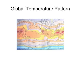 The document summarizes key aspects of Earth's atmosphere. It describes that Earth's atmosphere is composed primarily of nitrogen and oxygen. It also notes that the atmosphere becomes thinner with increasing altitude and discusses the layers of the atmosphere, including the troposphere where weather occurs. Additionally, it introduces atmospheric circulation patterns driven by uneven solar heating, including Hadley cells that transport energy from the equator to higher latitudes.