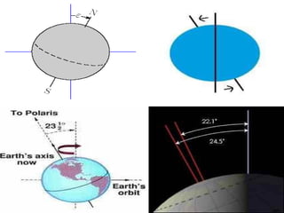 3) The tilt of Earth's axis and its revolution around the sun cause the four seasons - spring, summer, fall, and winter - in the northern and southern hemispheres.
