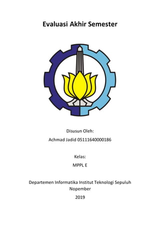 Dokumen ini menjelaskan evaluasi akhir semester mengenai manajemen proyek untuk aplikasi pengelolaan data di CV. Termitech. Topik yang dibahas meliputi gambaran sistem, siklus hidup manajemen proyek, fungsi manajemen proyek, WBS, serta anggaran biaya proyek. Evaluasi ini bertujuan untuk memahami proses pengembangan aplikasi dan pengontrolan biaya dalam konteks proyek tersebut.