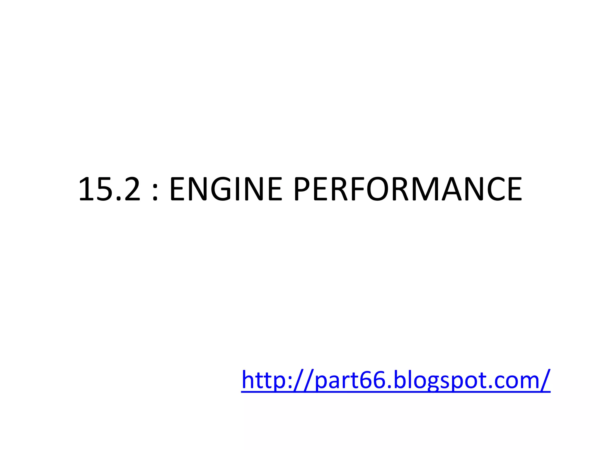 This document discusses various aspects of engine performance including: