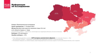 Документ представляет результаты всеукраинского исследования общественного мнения о праздновании Пасхи в условиях карантина в апреле 2020 года. Большинство респондентов выбрали формат празднования «Пасха дома», включая просмотр онлайн-трансляций церковных богослужений. Исследование охватывает мнения по различным демографическим и географическим группам.