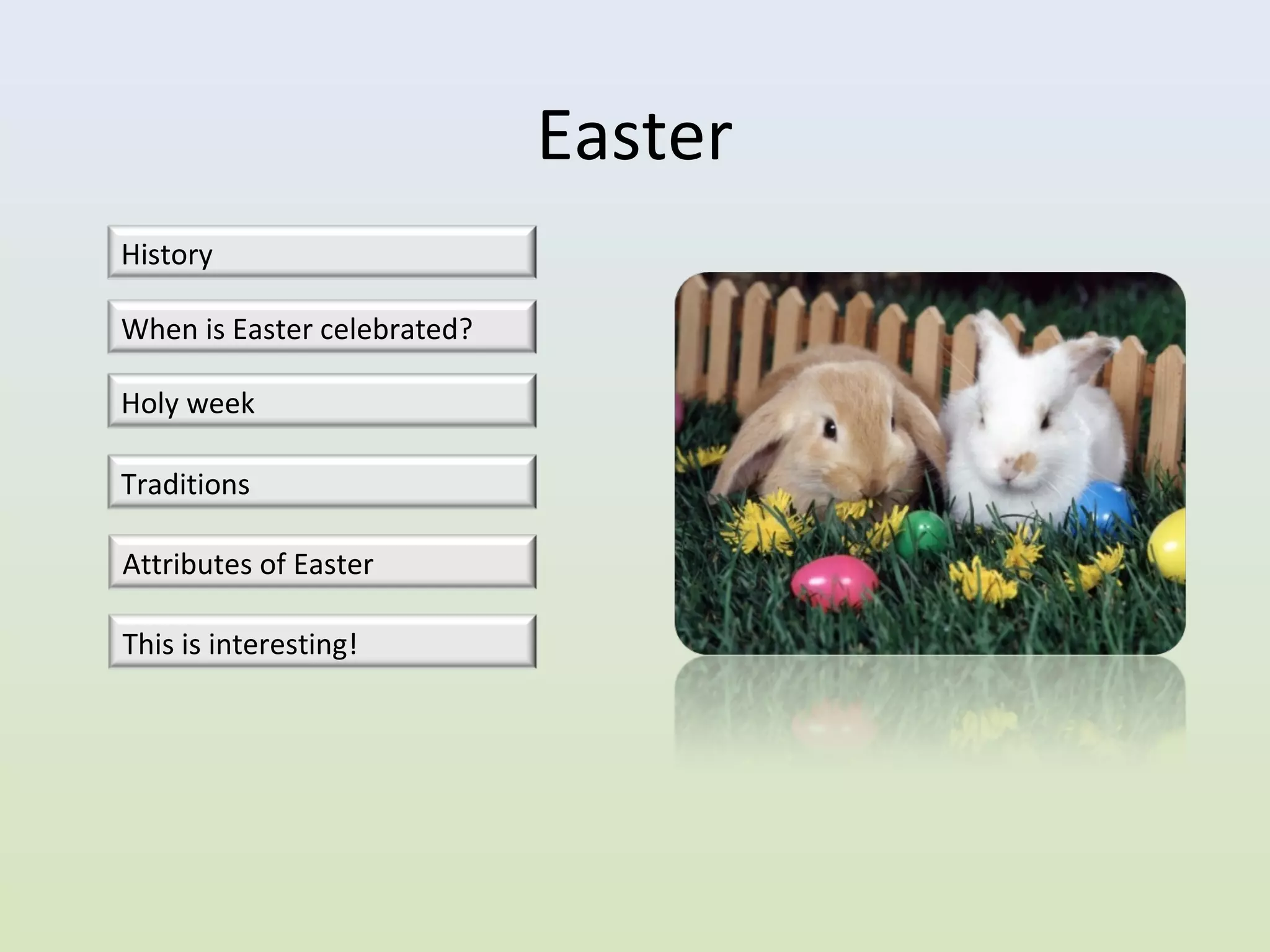 - Common Easter traditions include egg dyeing, egg rolling, egg beating contests, and children visiting neighbors to collect eggs.