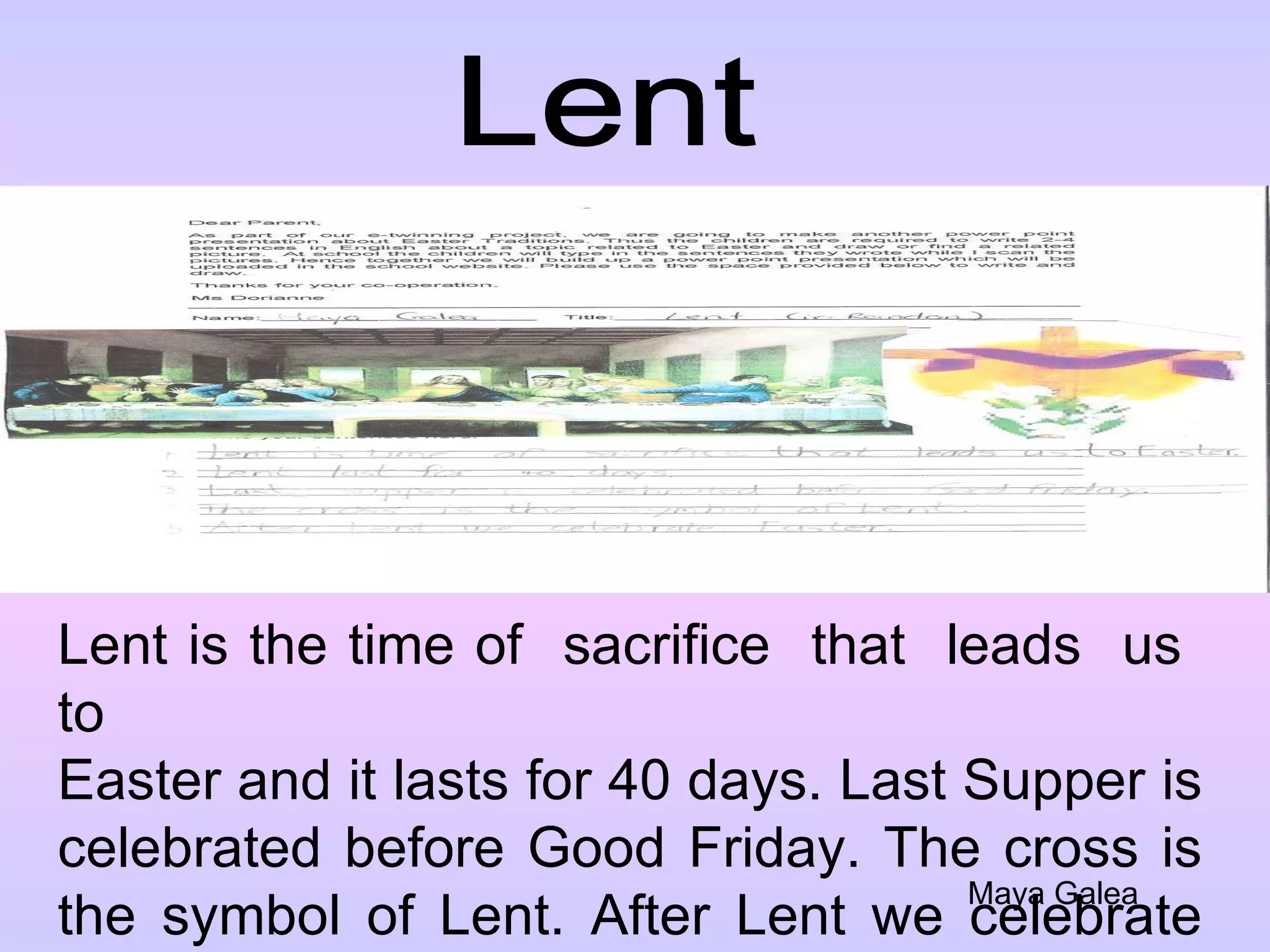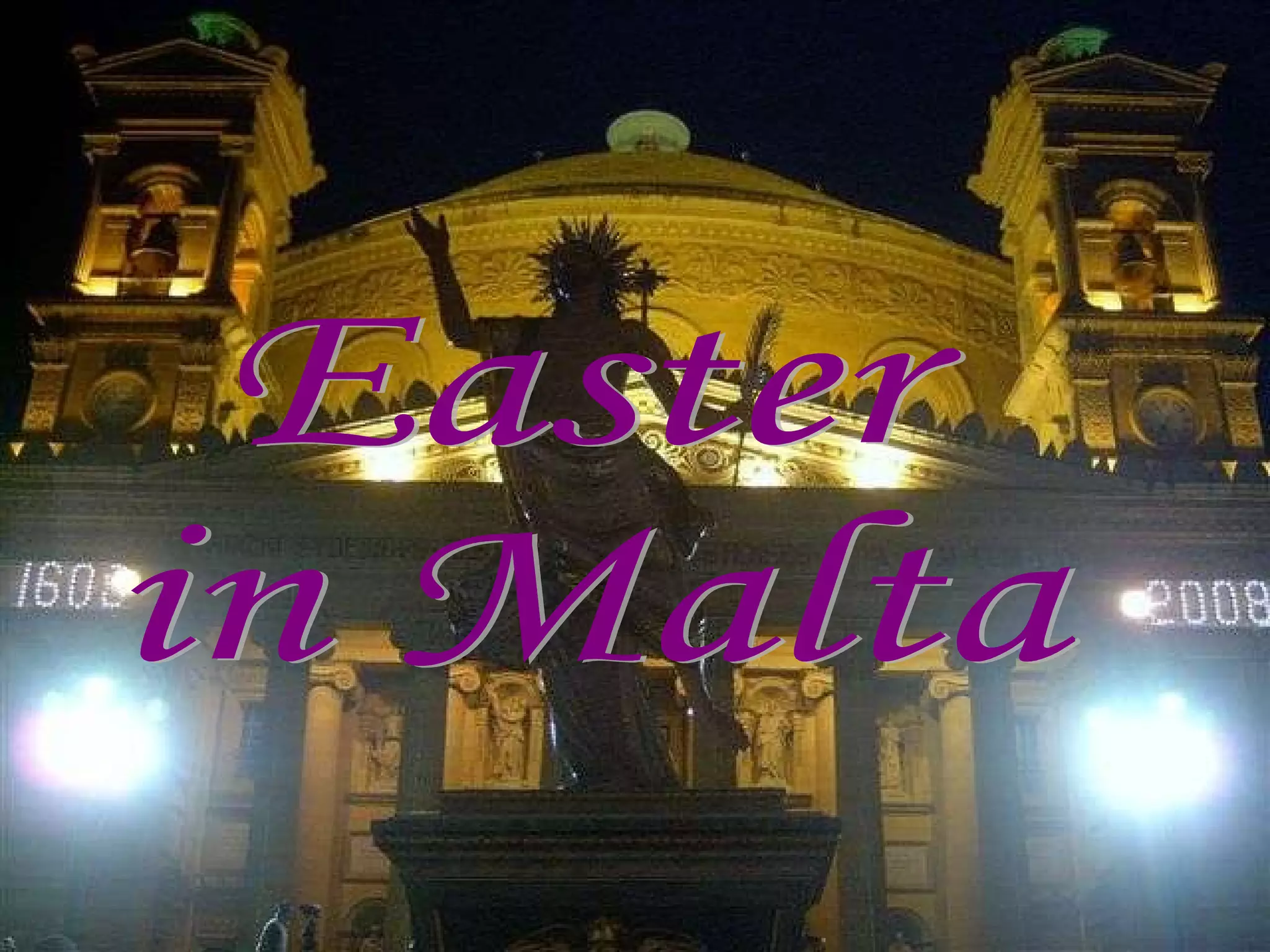 Easter traditions in Malta include Lent, Holy Week, and celebrating Easter Sunday. Lent is a 40 day period of sacrifice leading up to Easter. Holy Week includes Palm Sunday, Holy Thursday commemorating the Last Supper, Good Friday marking Jesus' crucifixion, and Holy Saturday. On Easter Sunday, Maltese celebrate Jesus' resurrection with special foods like lamb, figolli, and kwarezimal sweets. Children enjoy collecting eggs and other Easter treats.