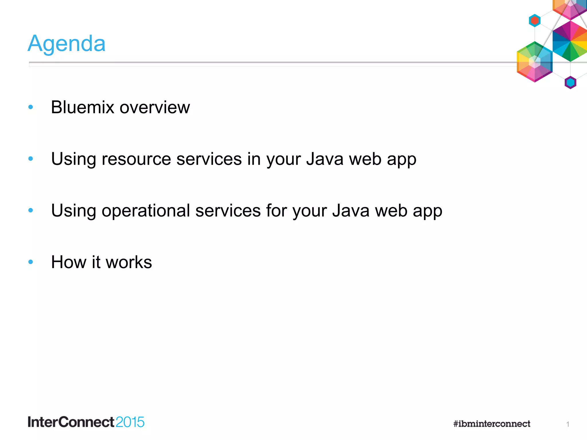 The document outlines IBM's Bluemix, a cloud platform designed for users including novice and enterprise developers, emphasizing rapid application development, integration of various services, and operational efficiency. It details how to leverage resource and operational services within Java web applications, alongside auto-scaling, user authentication, and monitoring tools for better application management. The document highlights Bluemix's foundation in open technology, aimed at simplifying app deployment while providing flexibility and secure integrations.