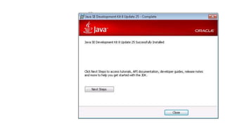 This document serves as an introductory guide for Java programming targeted at beginners, detailing the installation of Java Development Kit (JDK) and Eclipse Integrated Development Environment (IDE). It outlines the process of writing, compiling, and debugging Java code, exemplified with a sample program that outputs a statement. Additionally, it provides instructions for setting up the Java compiler and executing code through the command prompt.