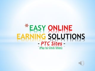 This document provides an overview of earning money through pay-to-click websites with little time, effort or skills required. It recommends registering accounts on 8 reliable pay-to-click sites and a Payza account. The strategy involves clicking ads on the sites for 1 hour every other day, then reinvesting earnings on referrals to speed up the process. Proper registration of a Payza account and local bank account is described to transfer funds. Cautions are provided against risky behaviors that could waste time and money.