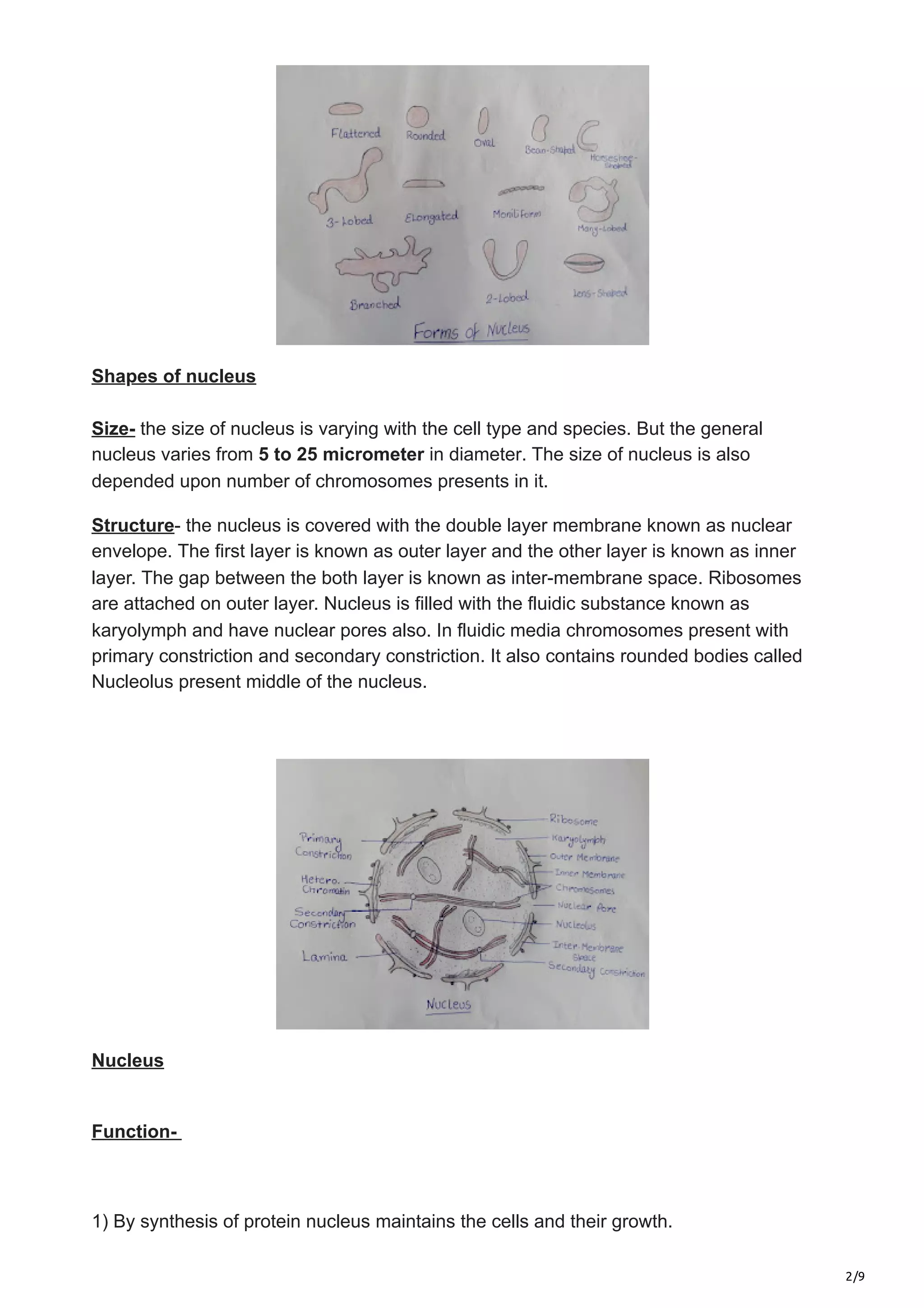 The nucleus is the largest organelle in eukaryotic cells and controls cell activity. It is surrounded by a double membrane and contains genetic material in the form of DNA. The nucleus has several structures including the nuclear envelope, nucleolus, chromatin, and chromosomes which contain the genes. It performs essential functions like DNA synthesis and repair, gene regulation, and cell division.