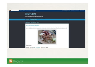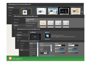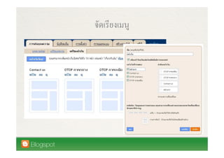 This document introduces Wirawat Lian-udom and provides information about his blogs. It discusses some key features of using Blogspot as a blogging platform, including templates, domain mapping through Google Apps, and monetizing blogs through Google Adsense. The document also highlights some common uses of blogs, such as using them as portfolios or for tweeting, and describes key aspects of managing a Blogspot blog through the dashboard.