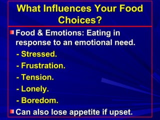 This document discusses various eating disorders including their symptoms, causes, prevalence, course, consequences, treatment and risk factors. Pica, rumination disorder and failure to thrive are eating disorders that typically affect infants and children. Anorexia nervosa, bulimia nervosa, and binge eating disorder are common disorders that often develop during adolescence or early adulthood. Treatment involves a multidisciplinary team to address the medical, nutritional and psychological aspects of the disorder. Eating disorders frequently co-occur with other psychiatric conditions like depression and anxiety.