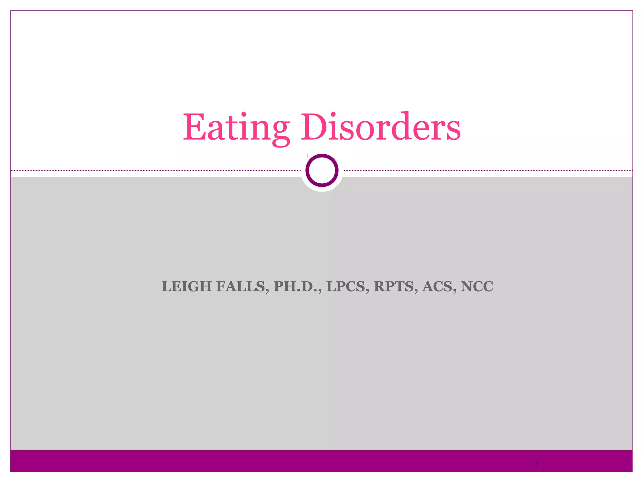 This document discusses eating disorders and related topics. It provides statistics showing that eating disorders are common, especially among young women, and that societal pressures around weight and thinness contribute to their development. The document examines various theories for what causes eating disorders, including genetic, biological, psychological, and socio-cultural factors. Family dynamics and mood disorders are also discussed as potential risk factors. The diagnostic criteria for eating disorders from the DSM-5 such as anorexia nervosa, bulimia nervosa, and binge eating disorder are summarized.