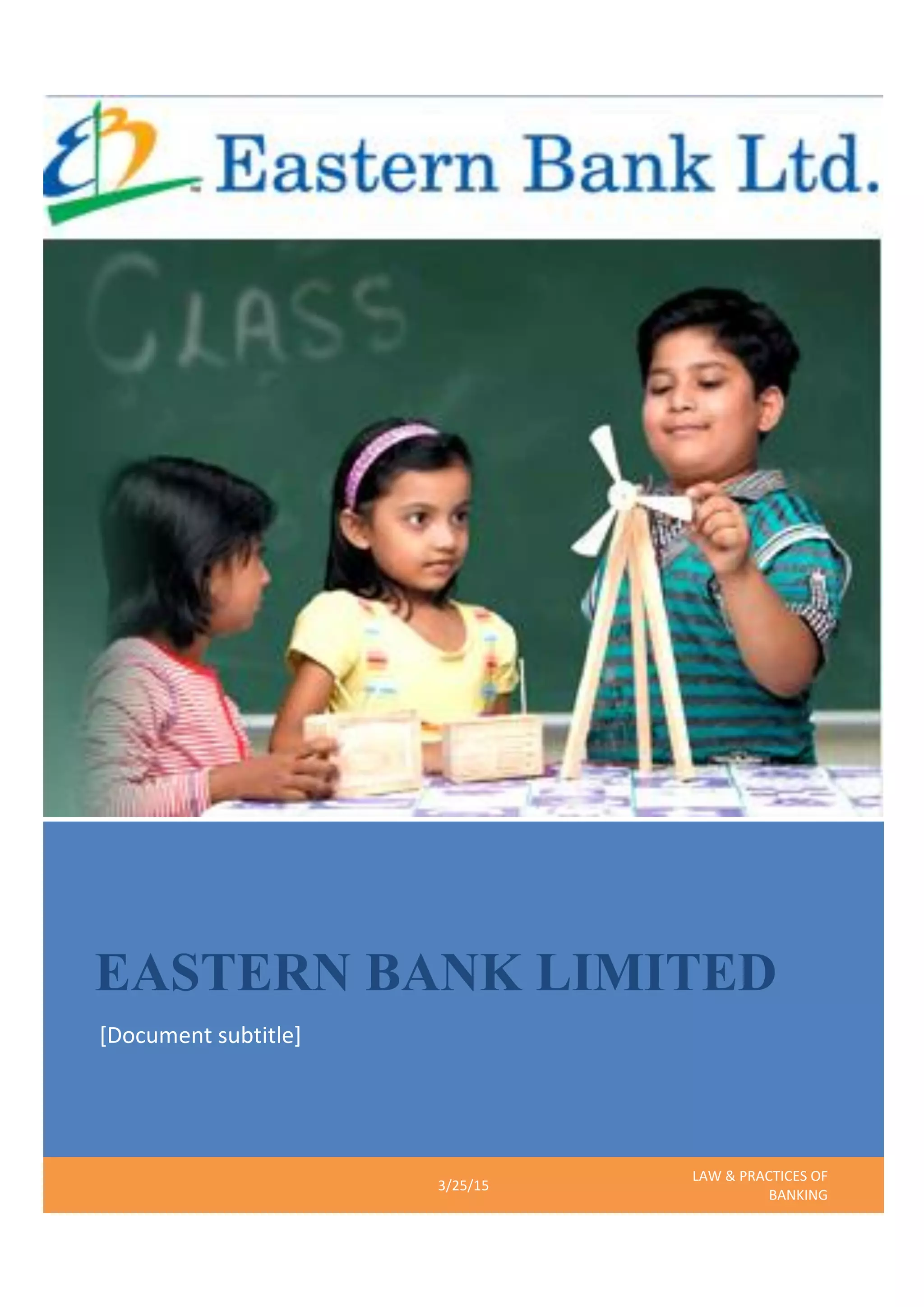 This document provides information about Eastern Bank Limited (EBL) and its activities and role in Bangladesh's economic development. It discusses EBL's functions such as receiving deposits, providing loans and advances, creating loan deposits, and facilitating foreign trade. It also outlines EBL's public utility functions like money remittance and safekeeping valuables. Finally, it describes how EBL promotes capital formation, trade and industry, and agriculture through providing financing and other services. Overall, the document shows how EBL operates as a commercial bank and contributes to Bangladesh's economic growth.