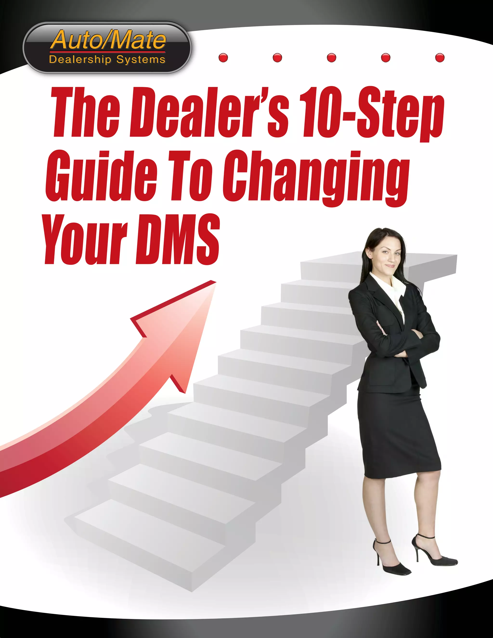 The document is a guide for dealerships on changing their dealership management system (DMS), emphasizing the importance of understanding current systems, market options, and cost assessments. It outlines a 10-step process, including auditing current services, creating a needs list, and vetting vendors to ensure a best-fit partnership. The guide aims to help dealers navigate the complexities of DMS selection during challenging industry times.