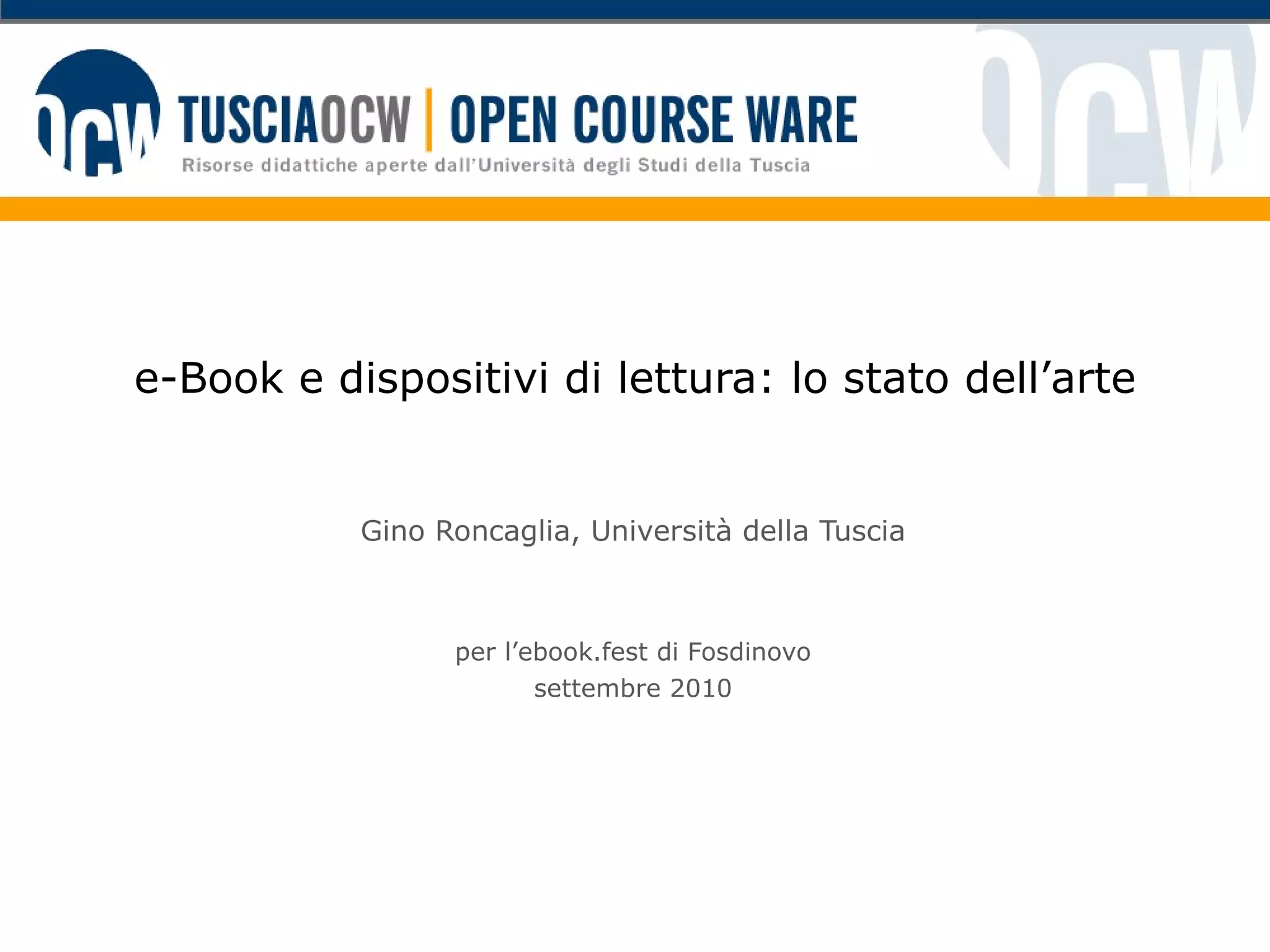 Il documento analizza l'evoluzione degli e-book e dei dispositivi di lettura, evidenziando come la cultura digitale stia influenzando il consumo di testi. Si osserva una diminuzione della lunghezza degli articoli di ricerca e un progressivo spostamento verso la saggistica divulgativa e i best-seller, mentre la letteratura colta rischia di marginalizzarsi. Inoltre, si sottolinea la necessità di integrare la forma-libro nell'ambiente digitale per rispondere alle esigenze delle nuove generazioni di lettori.