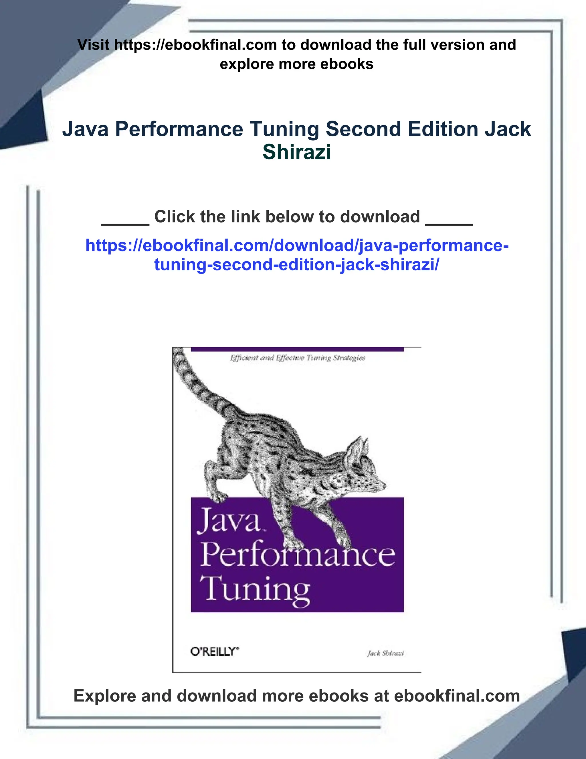 Java Performance Tuning Second Edition Jack Shirazi available for instant access upon payment at https://ebookfinal.com/download/java-performance-tuning-second-edition-jack-shirazi. Discover more textbooks and ebooks in https://ebookfinal.com Full chapter PDF download.