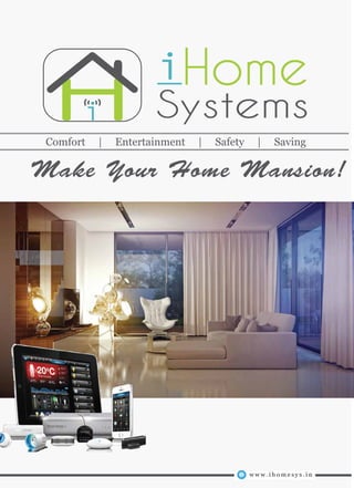 iHome Systems offers a comprehensive home automation solution that allows users to control various smart home devices and systems from a central hub or mobile devices. The system aims to improve comfort, entertainment, safety and energy savings for homeowners. It uses an open platform approach and works with various third party devices and apps to provide choice and compatibility. The system can automate lighting, security, HVAC and other functions to create customized home experiences and control needs. Installation and support is provided by authorized and trained dealers.