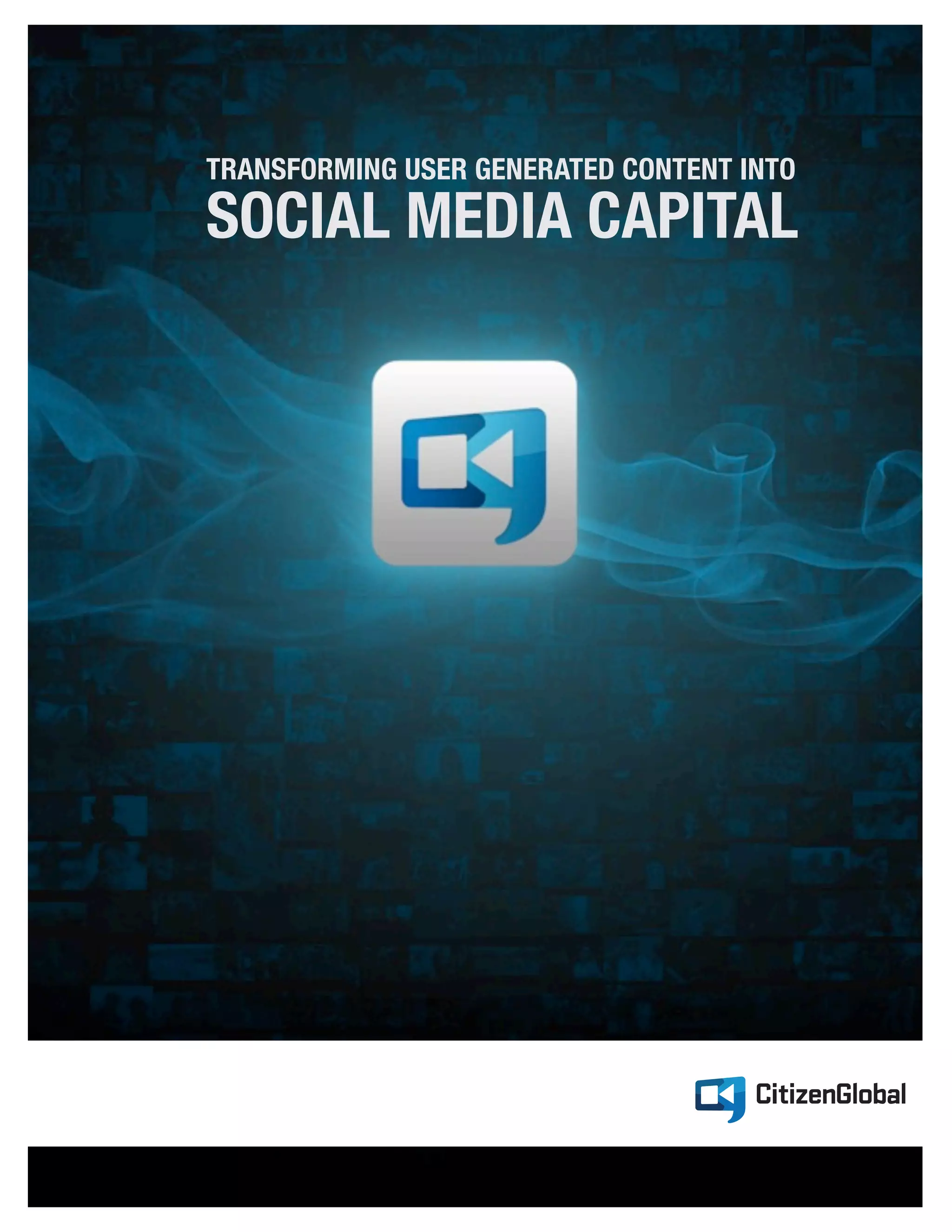 This document discusses how CitizenGlobal transforms random, low-quality user generated content on platforms like YouTube into high-quality, organized social media capital for brands. CitizenGlobal does this through its social video creation platform that empowers brands to invite customers to co-create brand content. This results in authentic brand stories that drive engagement and viral sharing across social media. CitizenGlobal also provides the technology and administration needed to manage this user-generated content process.