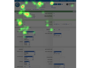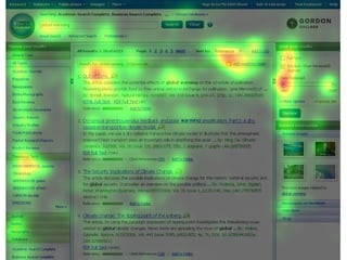 #11 Working with Kent State School of Library and Information Science (SLIS) Usability Lab ---- ScanPath And doing our own Usability Tests and Focus Groups Tools such as: Hardware: Tobii eyetracking system, Kramer input switching and mixing system Software: Techsmith Morae capture and analysis, Noldus Observer XT Depicted here to help us understand where user views focus on the interface, where they click, how they use certain features…