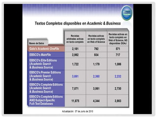 EBSCOhost is a company that provides online database access to libraries through its proprietary software, offering over 300 full-text and secondary databases. The psychology and behavioral science collection includes more than 559 full-text magazines, predominantly in PDF format. Users can perform searches and manage alerts, preferences, and citation tools through their platform.