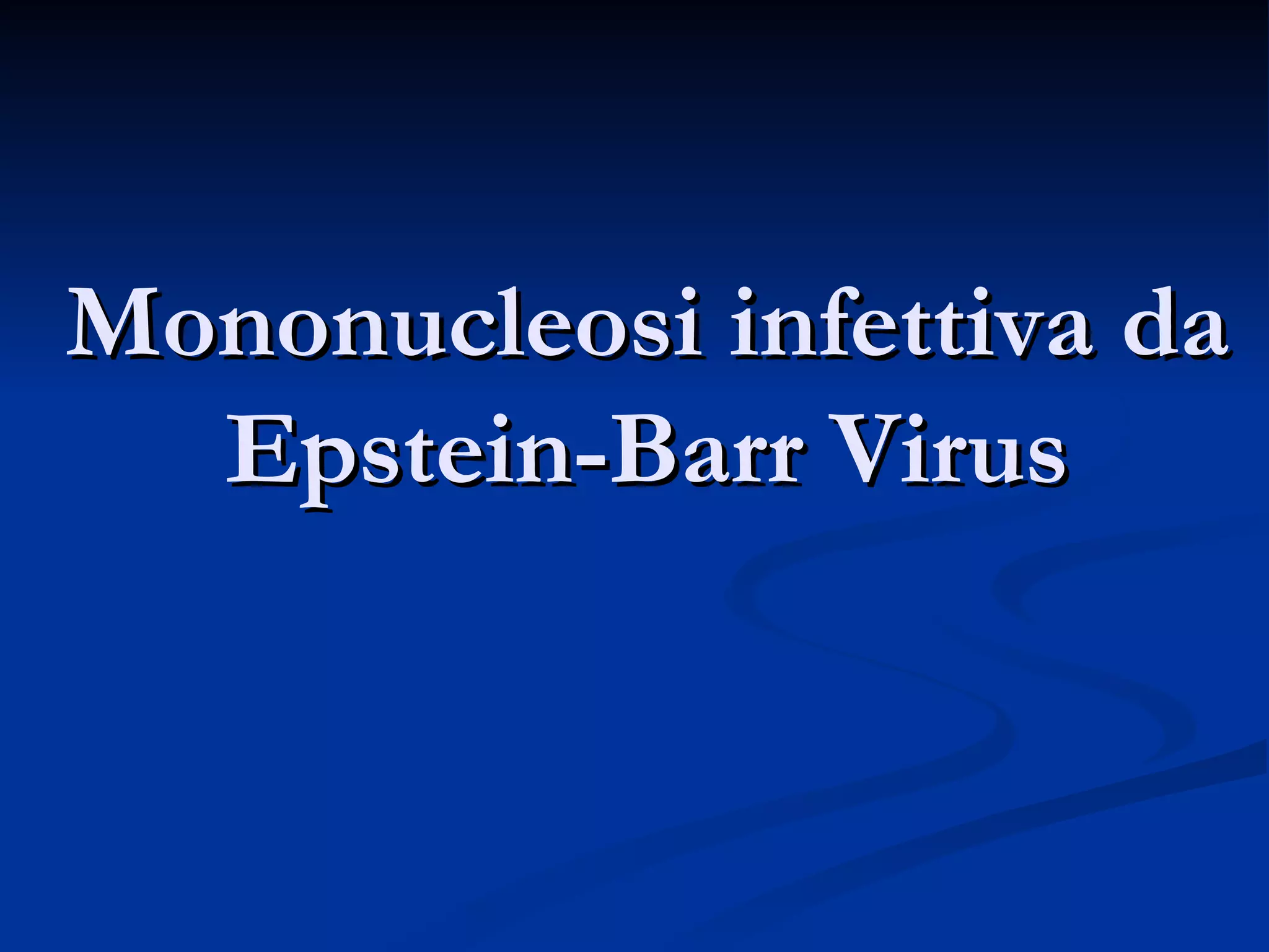 La mononucleosi infettiva, causata dal virus Epstein-Barr, colpisce principalmente giovani tra i 15 e i 25 anni e si trasmette per via aerea, replicandosi nei linfociti B. I sintomi includono febbre, faringite, linfadenopatia e splenomegalia, con un decorso tipico di 30-60 giorni. La diagnosi si basa su segni clinici ed esami sierologici, mentre il trattamento è sintomatico, ricorrendo a corticosteroidi nei casi gravi.