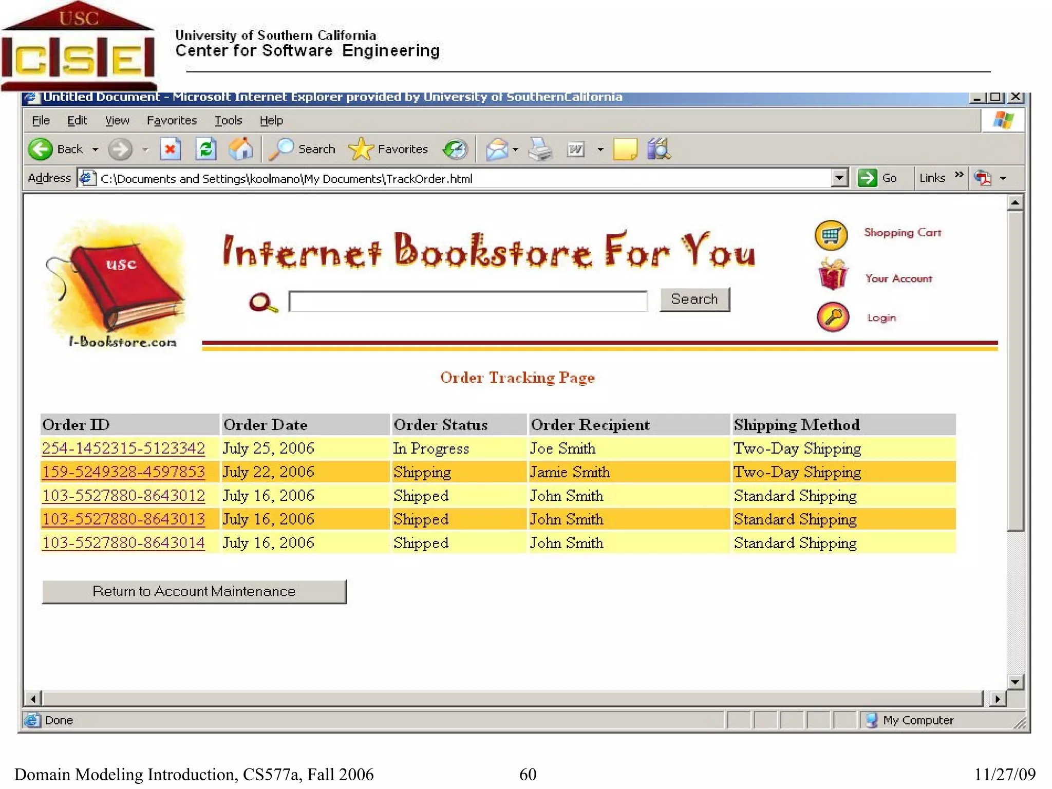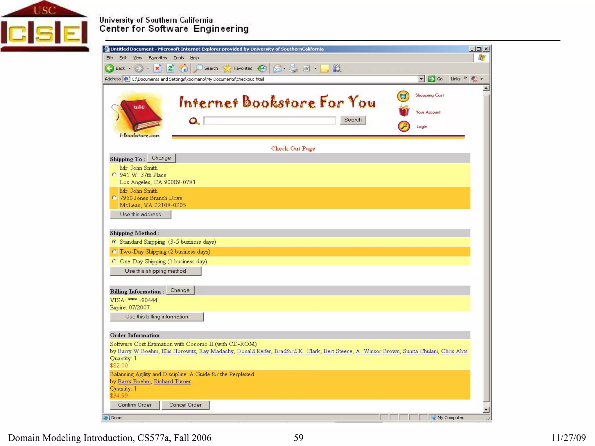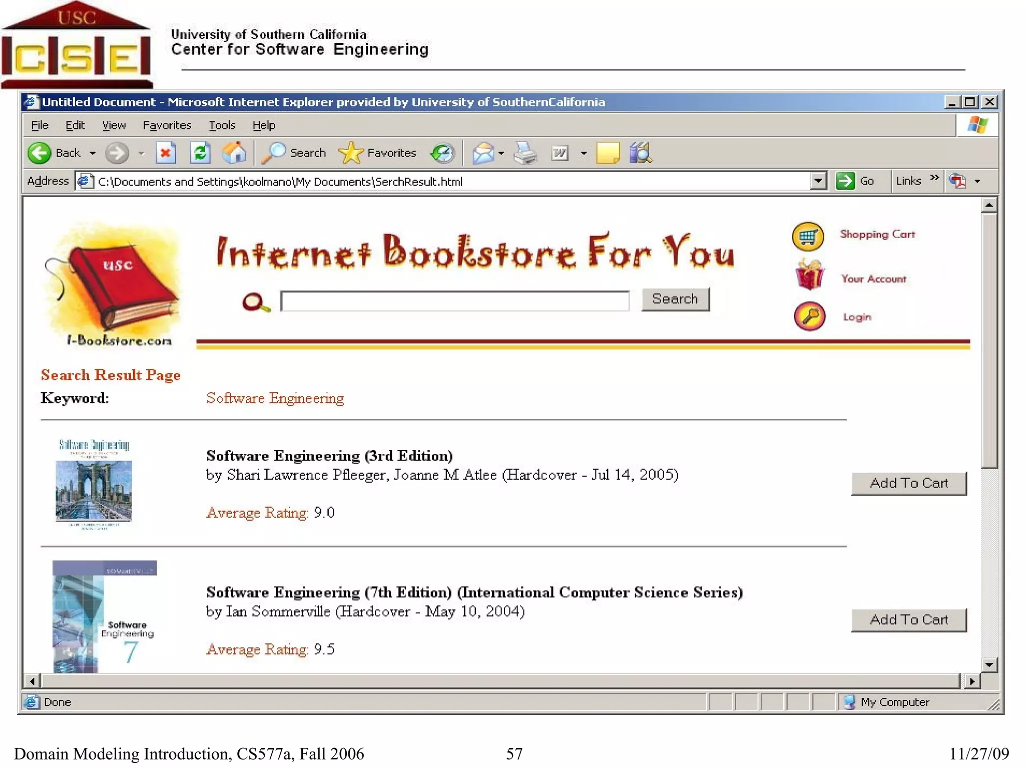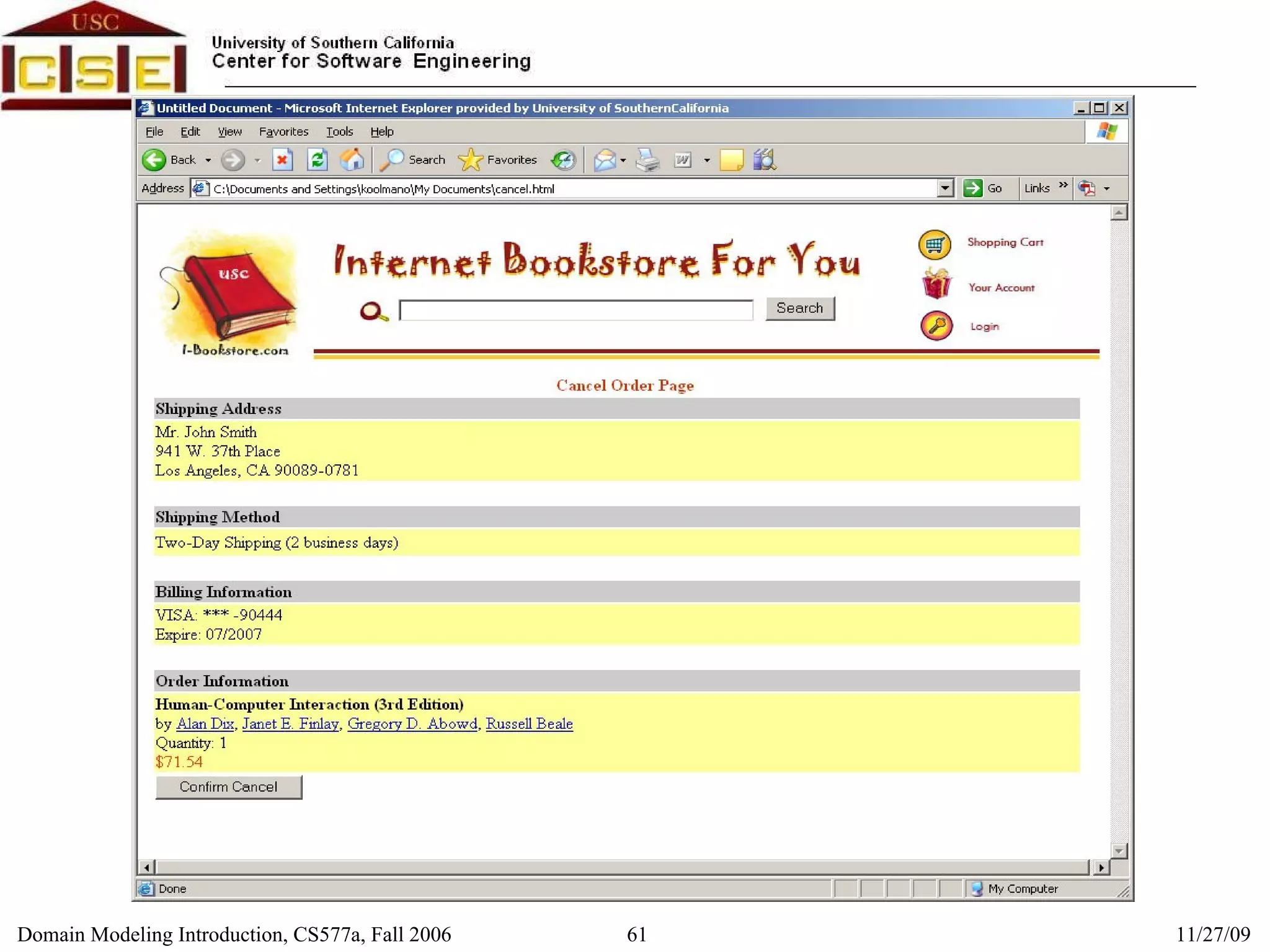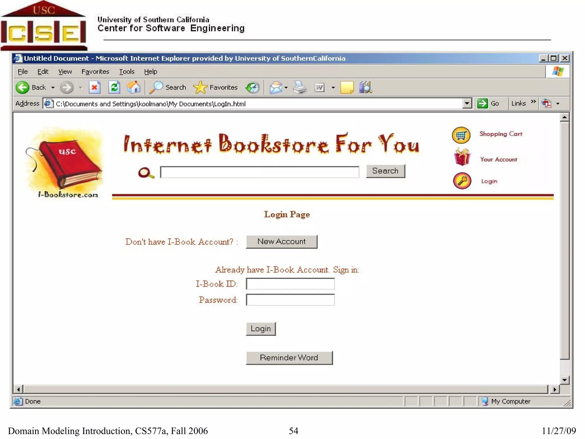 This document provides an introduction to object-oriented analysis and design (OOAD) and domain modeling. It discusses the key steps in OOAD, including domain modeling to understand the problem domain, and creating use case and class diagrams. It then uses an example of modeling an online bookstore to illustrate domain modeling. The document describes modeling the bookstore's requirements, classes, relationships, and key use cases. It provides explanations of UML notation for class and use case diagrams.