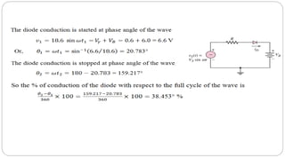 The document discusses electronic devices and circuits focused on the classification of components into active, passive, and electromechanical types. It covers the functioning of pn junction diodes, the principles of doping in semiconductors, and the operation of various rectifier circuits including half wave and full wave rectifiers. Additionally, it includes concepts related to integrated circuits and light-emitting diodes (LEDs), illustrating their characteristics and applications.