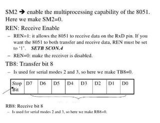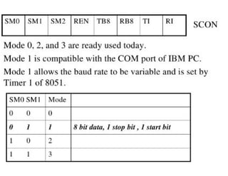 - Serial communication protocols including asynchronous communication and RS-232 standards.