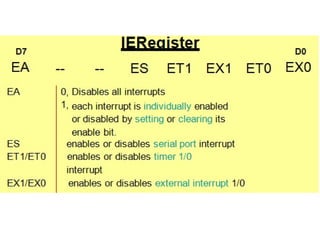 The document discusses interfacing a microcontroller with various peripherals including timers, serial communication, interrupts, LCDs, and keyboards. It provides details on: