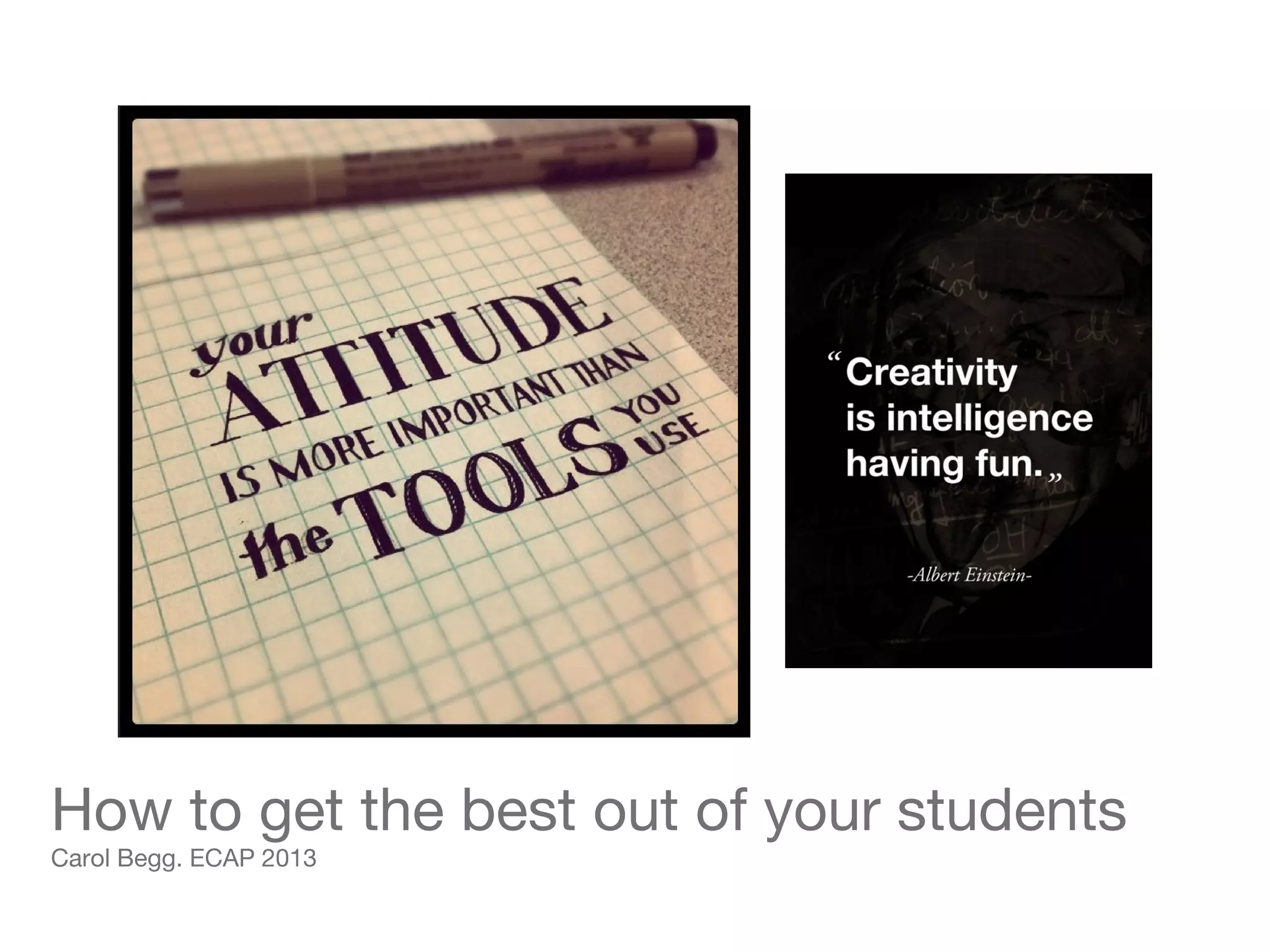 The document discusses the challenges faced by disaffected students in the classroom and identifies key demotivating factors. It emphasizes effective motivational teaching practices, such as creating a positive and engaging classroom environment and fostering student autonomy. The document also highlights the importance of clear communication, achievable goals, and encouraging self-reflection to maintain and enhance student motivation.
