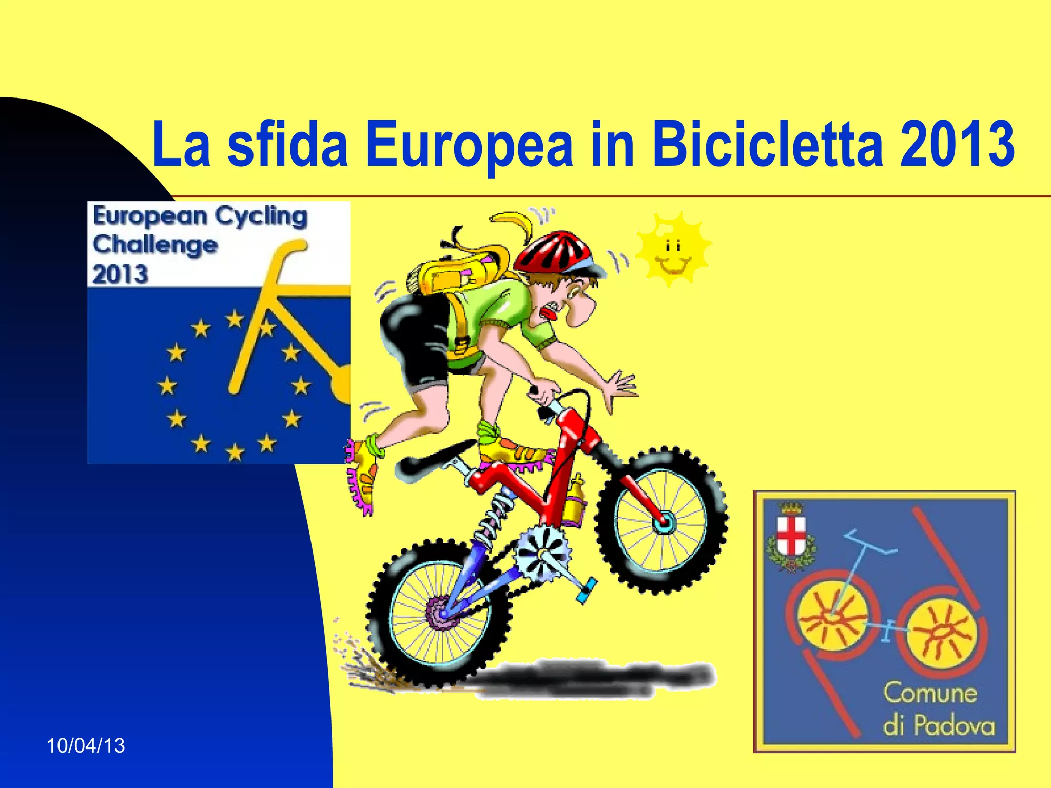 La sfida europea in bicicletta 2013 è una competizione tra città europee per promuovere l'uso della bicicletta come mezzo di mobilità sostenibile dal 1 al 31 maggio 2013. I partecipanti devono registrarsi su un sito web e monitorare i chilometri percorsi utilizzando un'applicazione di tracciamento. Le città partecipanti includono Londra, Dublino, e Bologna, e ci sono premi per i partecipanti che percorrono il maggior numero di chilometri.