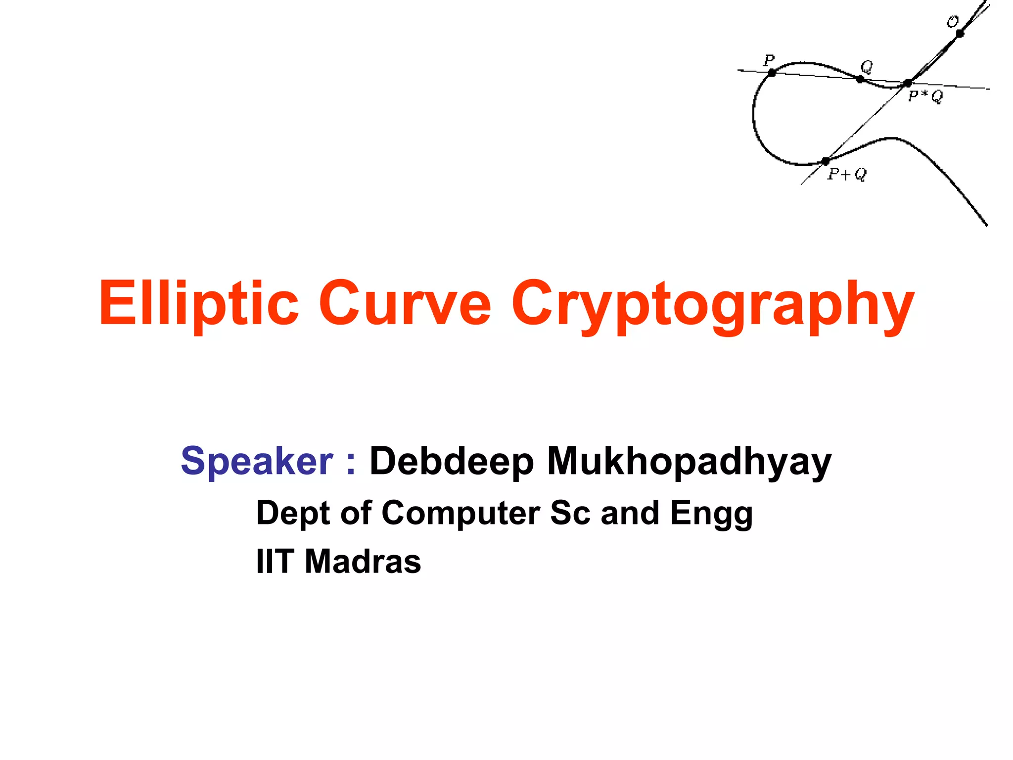 Elliptic Curve Cryptography (ECC) uses elliptic curves over finite fields for public-key encryption, digital signatures, and key exchanges. ECC provides the same security as other cryptosystems but with smaller key sizes. The talk introduced elliptic curves, defined their properties as abelian groups, and explained how to add points on a curve. It then discussed how ECC works analogously to other cryptosystems like El Gamal but using point multiplication on elliptic curves instead of exponentiation in finite fields.