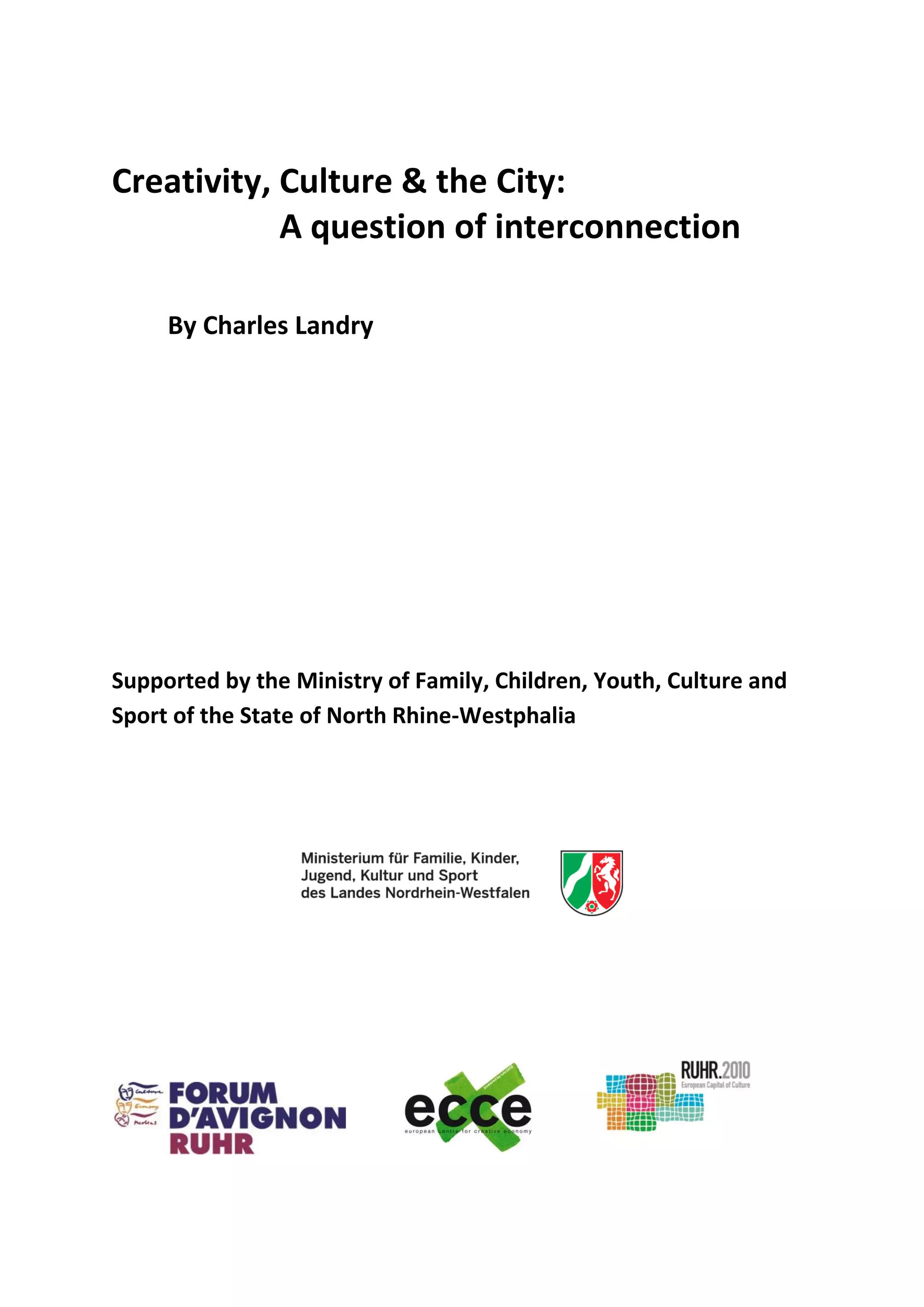 The document discusses the relationship between creativity, culture, and city development. It argues that creativity has become one of the most important assets for cities, as human creativity, skills, and talents are increasingly important resources compared to physical resources. Many cities now promote themselves as "creative cities" and focus on developing their cultural institutions and creative industries. However, truly embracing creativity means adopting a more holistic, cultural approach to urban development that considers both physical and social factors. Nurturing a creative mindset and culture across all parts of the city can help drive deeper transformation and ensure cities remain vibrant places to live and work.