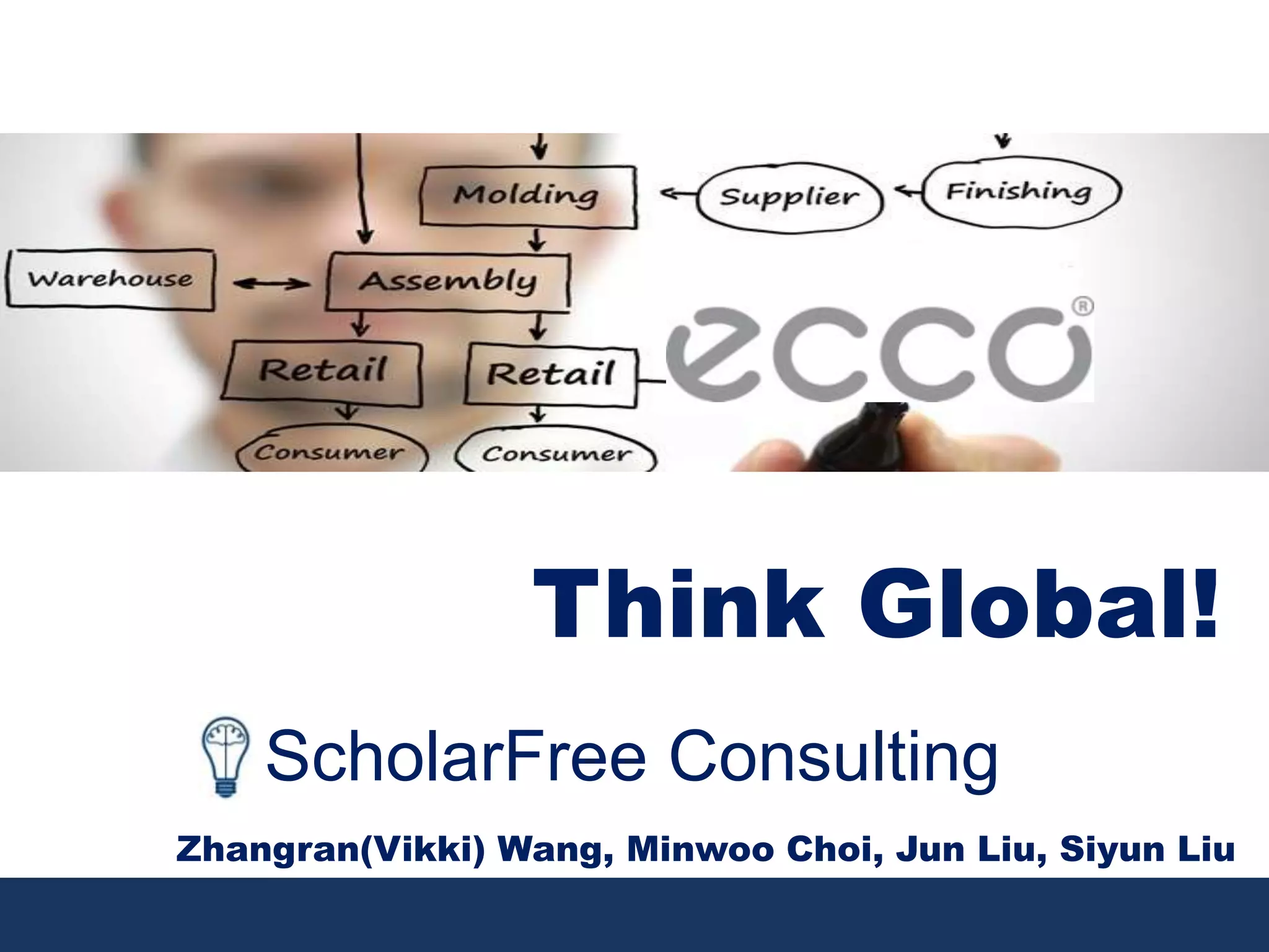 The document presents a strategic analysis of Scholarfree, focusing on optimizing their value chain, tailoring products to the Chinese market, and competing globally. Key recommendations include establishing a distribution center in China, customizing products, and leveraging technology for innovation. The report outlines the company's background, internal and external environments, issues, alternatives, and a detailed implementation plan.