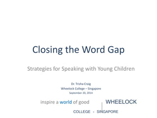 The document discusses the 'word gap' phenomenon, where children from different socio-economic backgrounds acquire language at differing rates, with significant vocabulary disparities emerging by age three. It suggests that engaging conversationally, using descriptive language, and actively listening can help bridge this gap, as advocated by researchers like Dr. Dana Suskind. Effective strategies for parents and teachers include tuning in to children's interests, ensuring conversational turns, and making reading a regular and interactive activity.