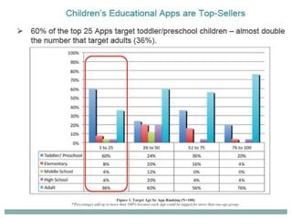 The document discusses the appropriate use of technology with young children. It provides tips for early childhood teachers on integrating technology into daily learning activities while applying developmentally appropriate practices. The document also discusses potential benefits and risks of screen time and mobile devices for young children and emphasizes the importance of monitoring use and engaging in technology together.