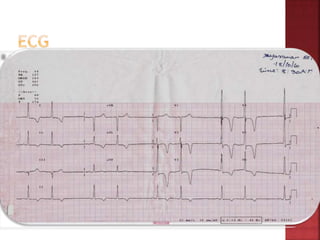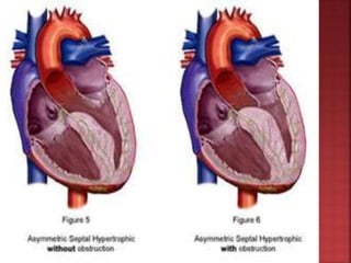 A 55-year-old male presented with shortness of breath for 7 days and chest pain for 6 days. Examination revealed a systolic murmur, cardiomegaly on chest x-ray, and ECG findings consistent with hypertrophic cardiomyopathy. The patient was diagnosed with hypertrophic cardiomyopathy, an inherited heart condition characterized by thickened heart muscle and small ventricle size. Risks include sudden cardiac death, heart failure, and embolic events. Treatment focuses on symptom management through medication and potentially surgery to reduce risks.