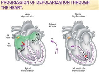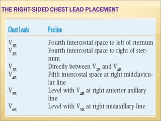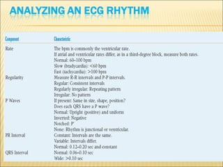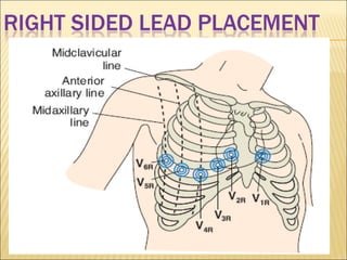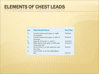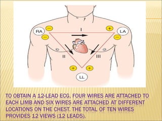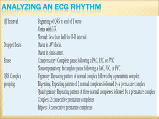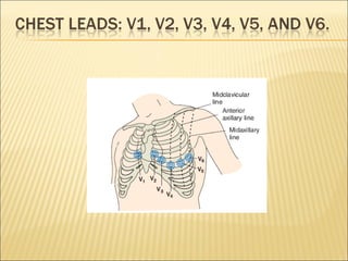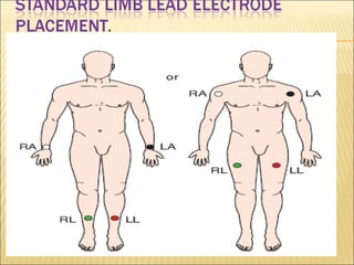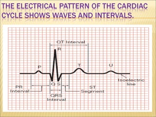 3) An ECG shows only electrical activity and not mechanical heart function. It provides definitions of key waves, complexes, intervals and segments seen on an ECG tracing.